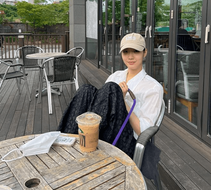 이미스 베이지 로고 자수 볼캡 모자 (김고은 인스타그램 패션)