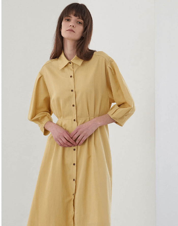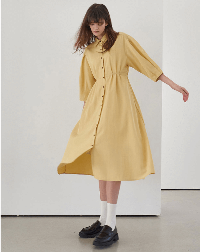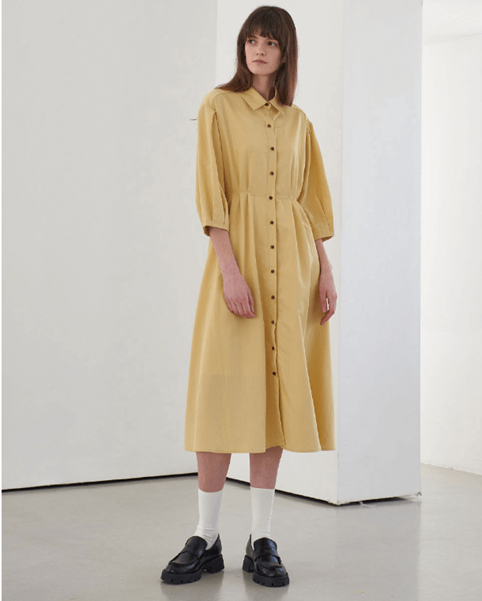PINTUCK SHIRRING SHIRTS DRESS_YELLOW