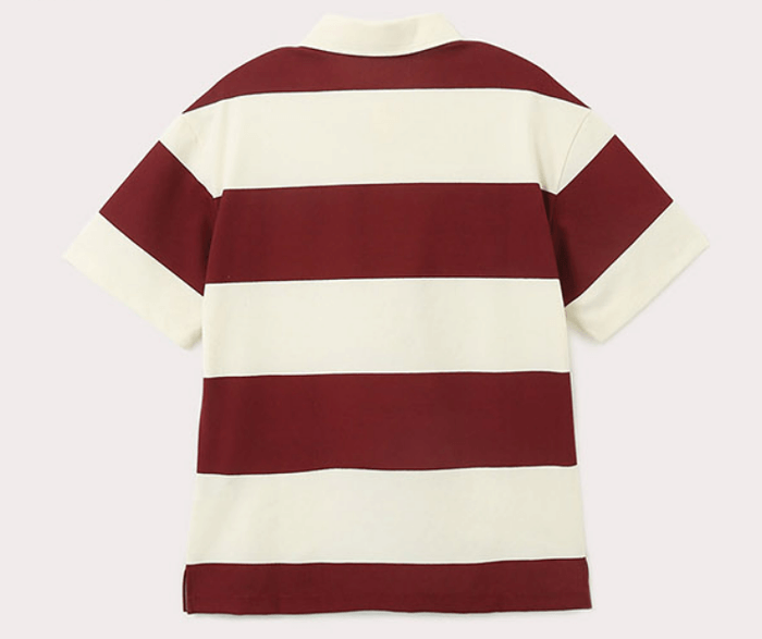 행텐 버건디 스트라이프 카라 반팔티 (나유나 패션)