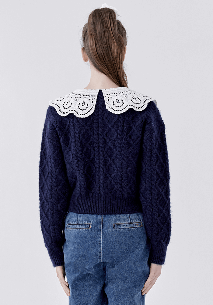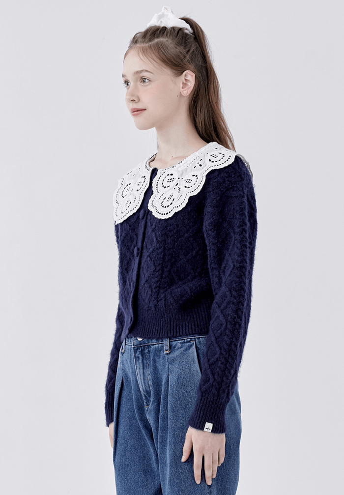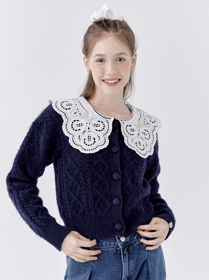블랑앤에클레어 레이스 카라 니트 가디건 (신하리 패션)