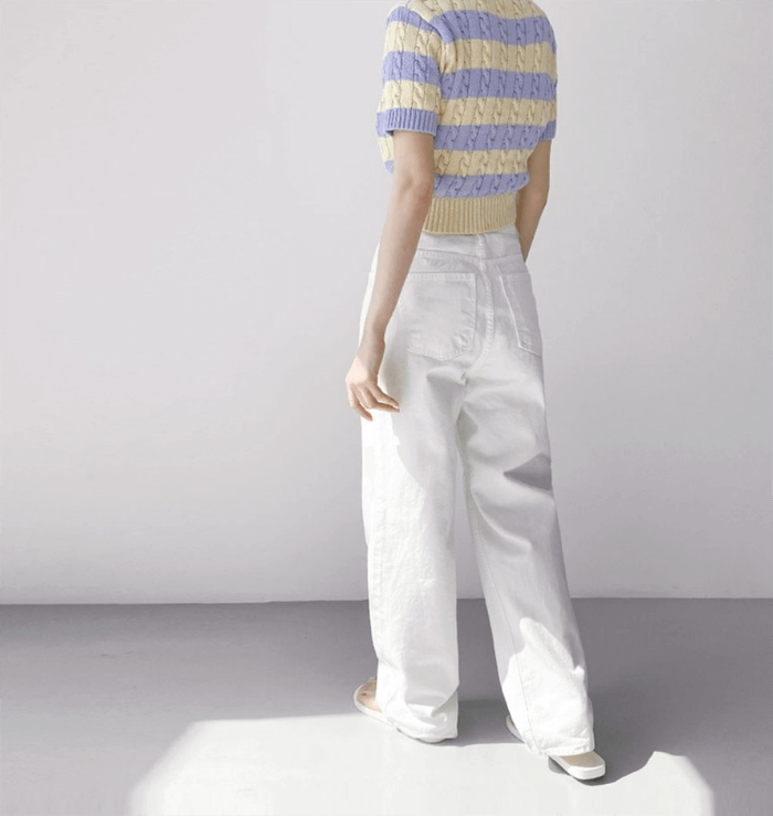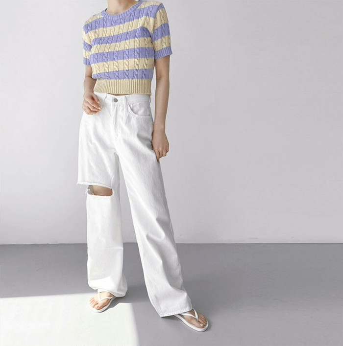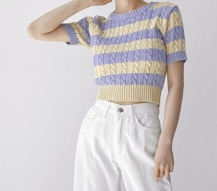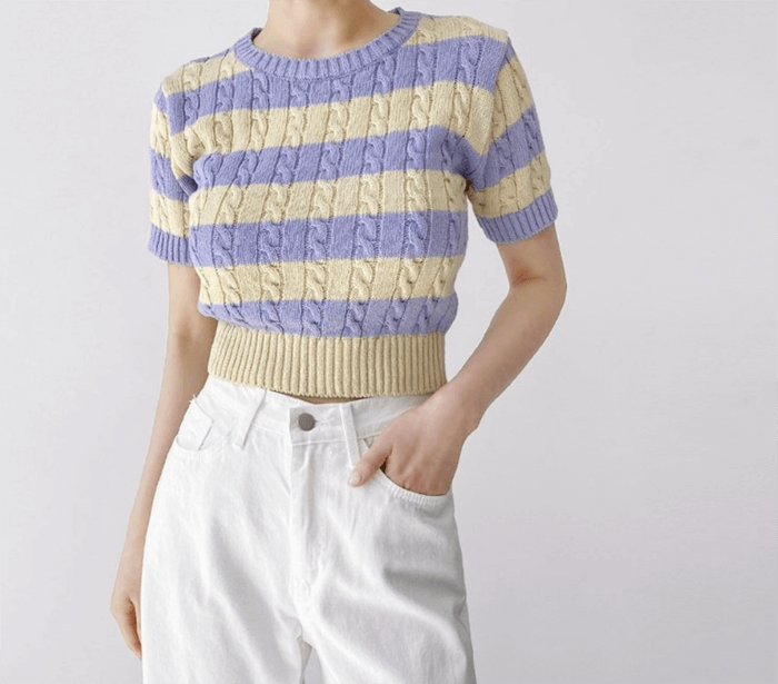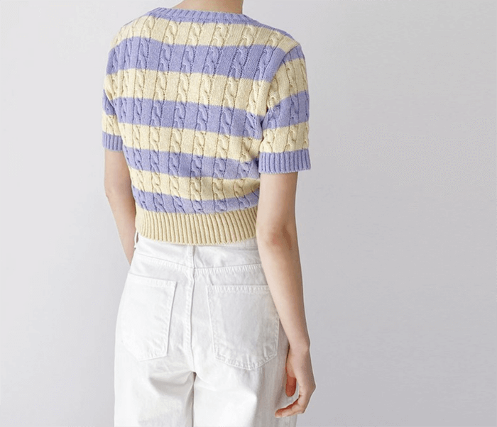 커먼 유니크 케이블 스트라이프 반팔 니트