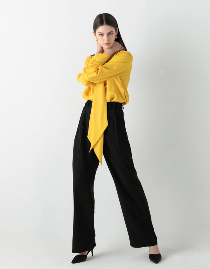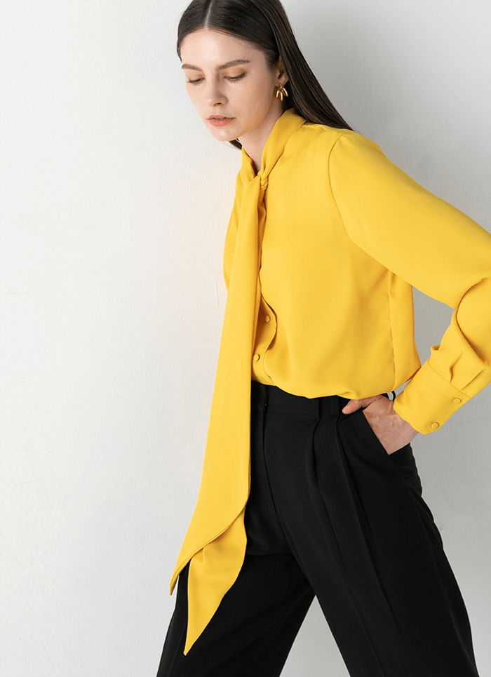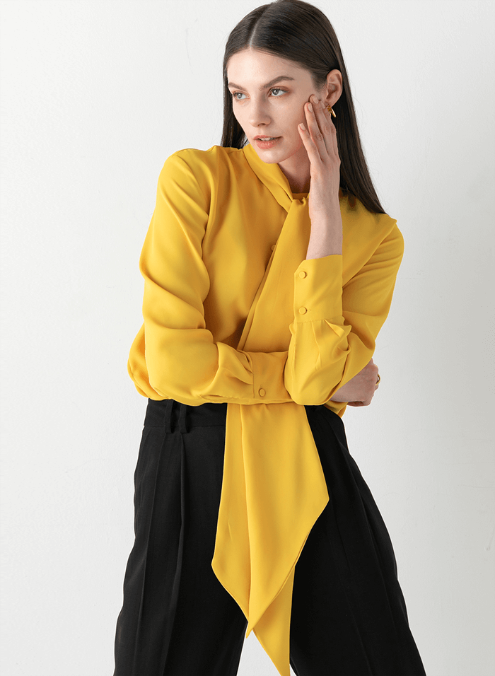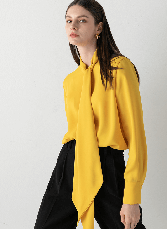 VIVID COLOR MUFFLER BLOUSE IN YELLOW