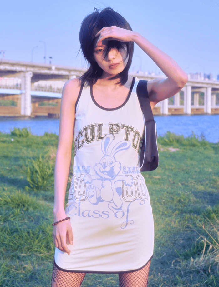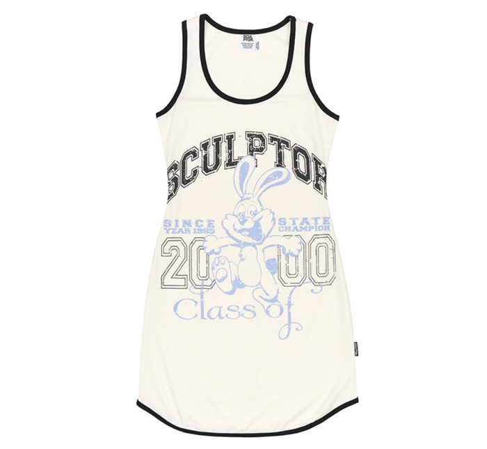 스컬프터 토끼 마스코트 슬리브리스 원피스
