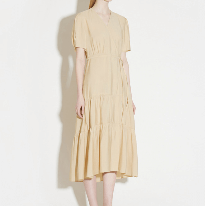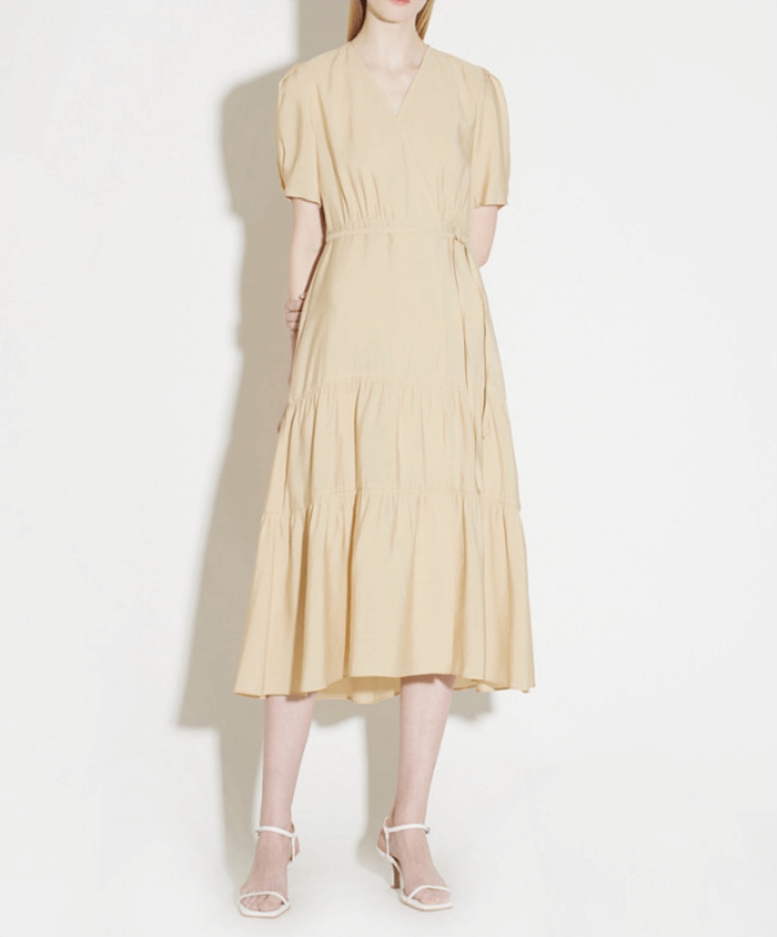 라이트 베이지 컬러 반팔 원피스