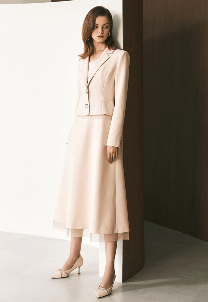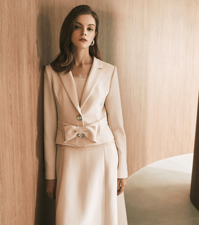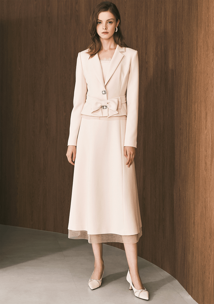 Brynlee / Ribbon Tailored Jacket Organza Dress (Light beige)